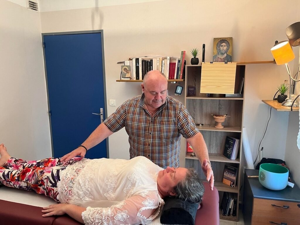 Je pratique sans contact direct : la personne reste habillée, allongée, dans un environnement calme et respectueux.